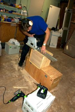 Lådorna byggs i plywood och limmas ihop med epoxi från West System. Det går snabbt och man behöver inte vara så noggrann med passformen. Saknas det någon millimeter så fyller epoxin ut fint.
