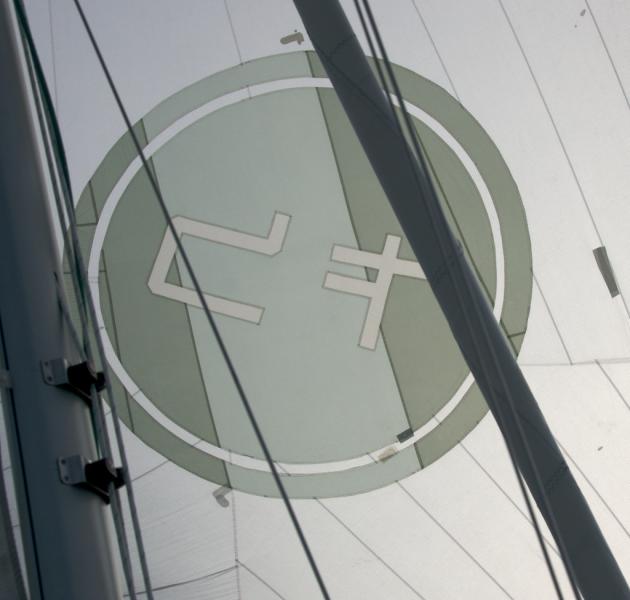 När vi köpte vår trailer fick vi med en bättre begagnad gennacker på köpet. Då den var bättre begagnad brydde vi oss inte om att undersöka den särskilt noga och när vi väl satte den upptäckte vi en stor symbol mitt i seglet. Det är en stor grå cirkel med några underliga tecken i. Är det en företagslogotyp? Någon okänd sekts symbol? Märket för ett ordenssällskap? Vi har ännu inte lyckats identifiera symbolen så om någon vet vad det är får ni gärna upplysa oss.