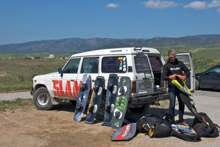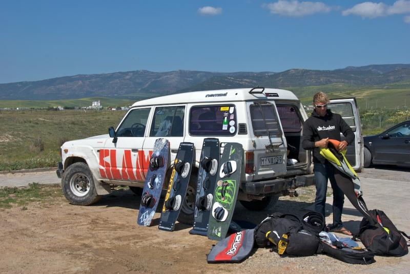 För två veckor sedan lastades båten på ett kontainerfartyg och vi flög tillbaka till Europa. Landcruisern stod kvar hos bilförsäljaren där vi lämnade den nästan fem månader tidigare. Med bil och trailer åkte vi direkt till Tarifa i Spanien och pumpade upp våra kiter. Vi som tidigare bara lyxkitat på platt vatten blev först shockade av att kita i brytande vågor men efter några frusterande timmar ordnade det upp sig. Om några dagar åker vi norrut förbi Biarritz i Frankrike och gör ett försök att kita där.