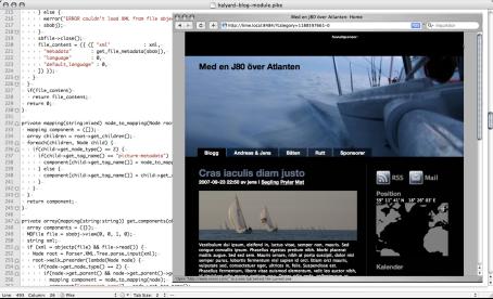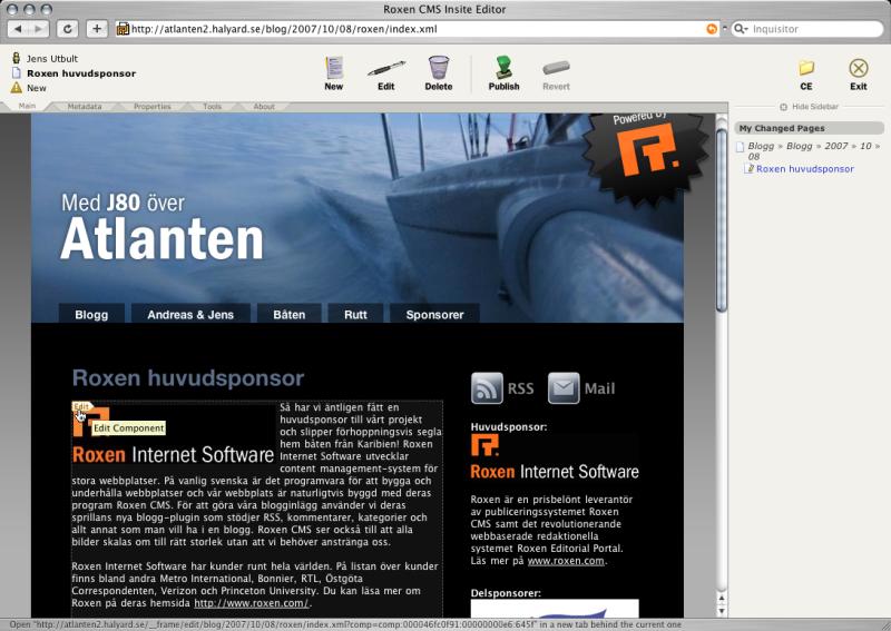 Redigering av en bloggsida i Roxen CMS.