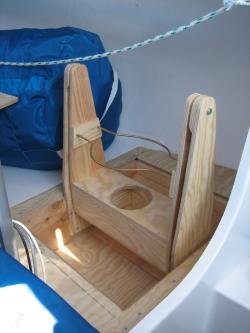 Lösningen på problemet är lådor. Massor av lådor. Mat kommer stuvas i en stor låda precis framför masten. Kläder och personliga prylar i en låda som hängs under sittbrunnen. Bestick och tallrikar i en liten flyttbar låda med en skärbräda som lock.
