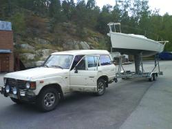 I Sveg hittade vi vår dragbil. Först hade vi planerat att köpa en Land Rover Defender tills en mer initierad bilvetare påpekade att Engelsk bil-kvalité inte är den bästa. Istället blev det en Toyota Landcruiser från 1986 för 20.000 kronor. Perfekt för att dra en J80 till Portugal!